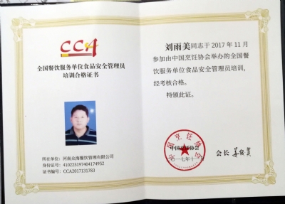• 18-02-10熱烈祝賀河南眾海餐飲管理有限公司榮獲中國飯店協(xié)會團(tuán)餐委員會委