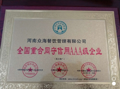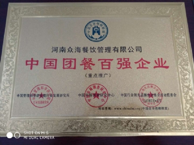 • 18-02-10熱烈祝賀河南眾海餐飲管理有限公司榮獲河南餐飲與飯店協(xié)會團(tuán)餐委